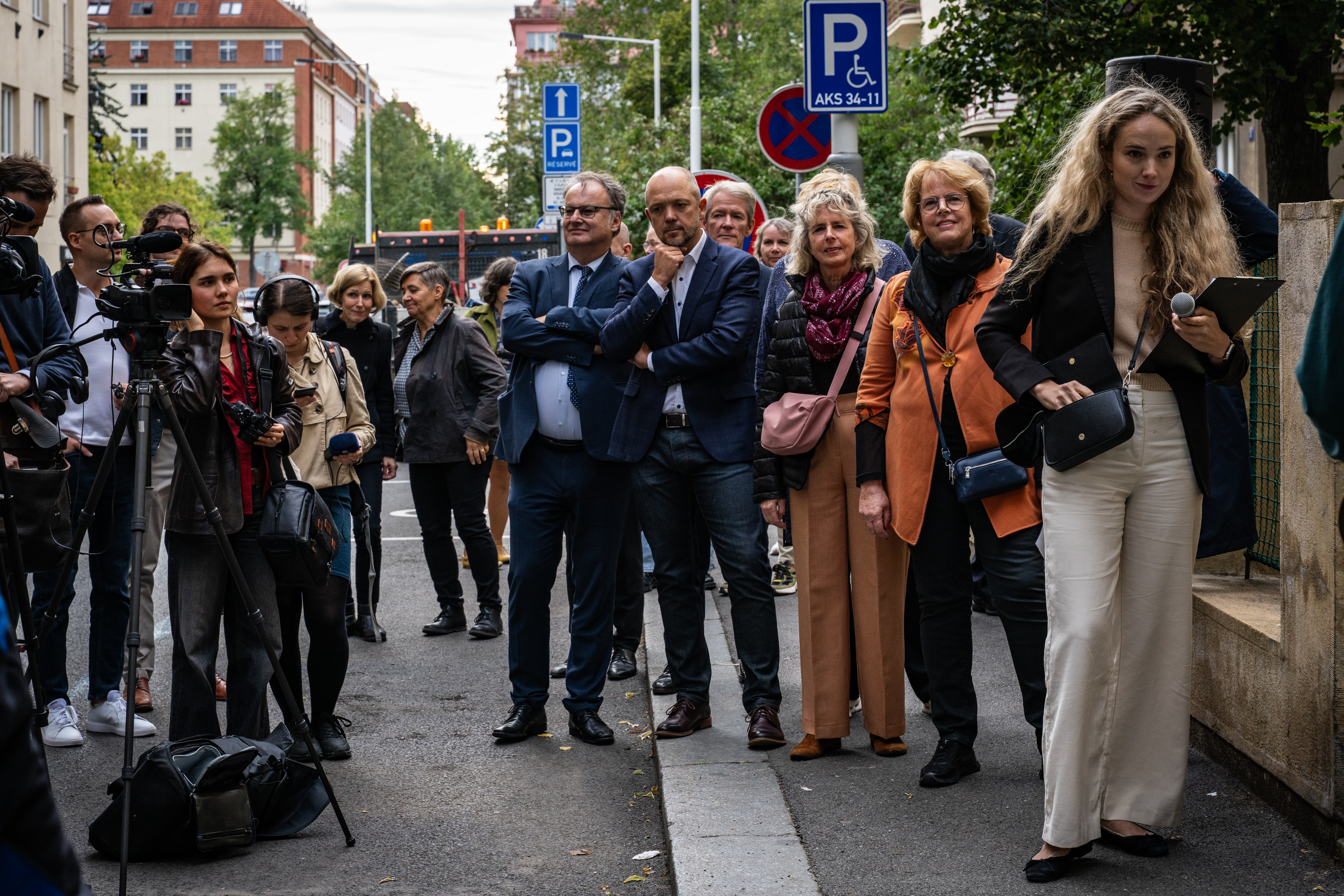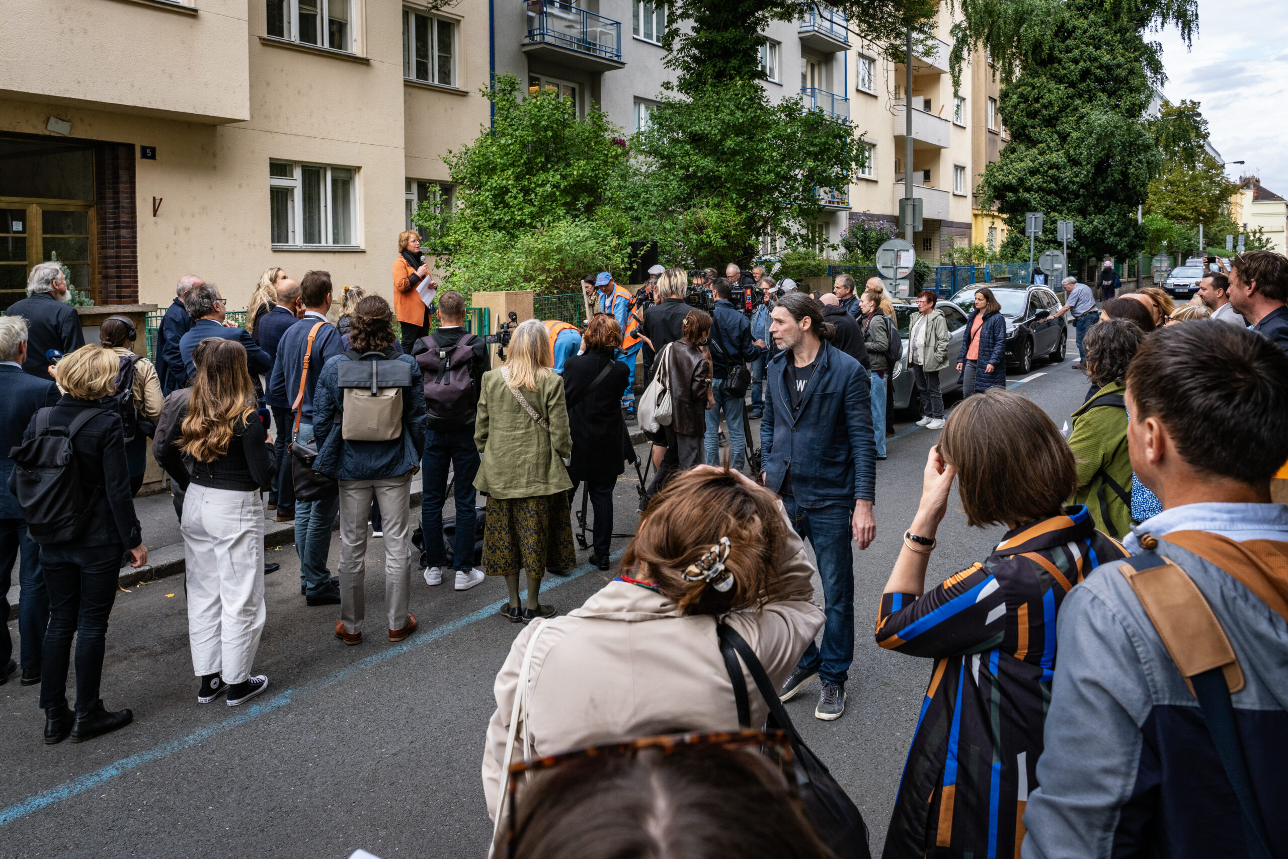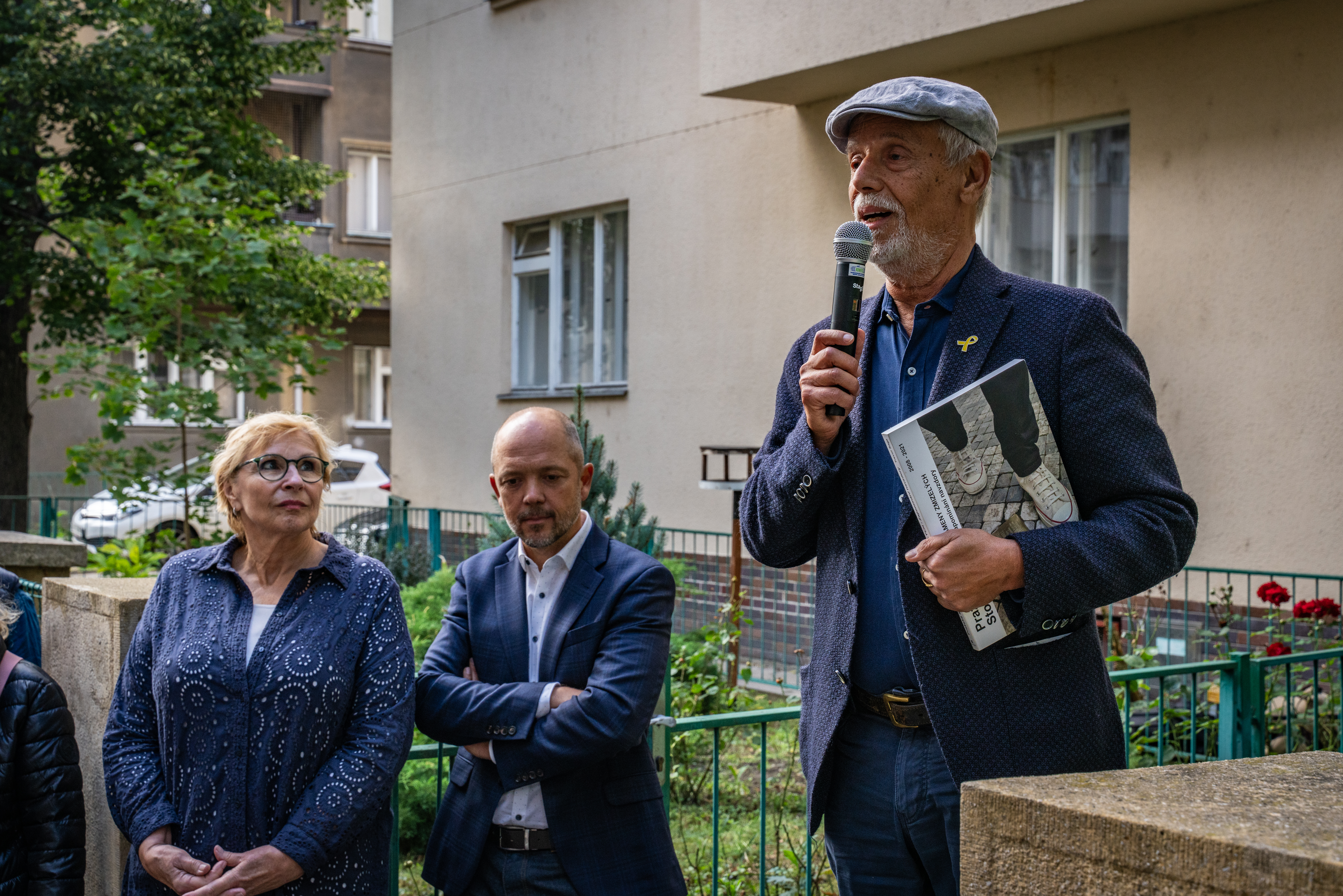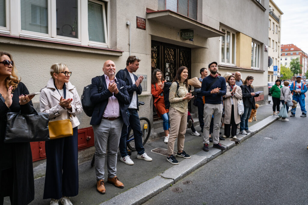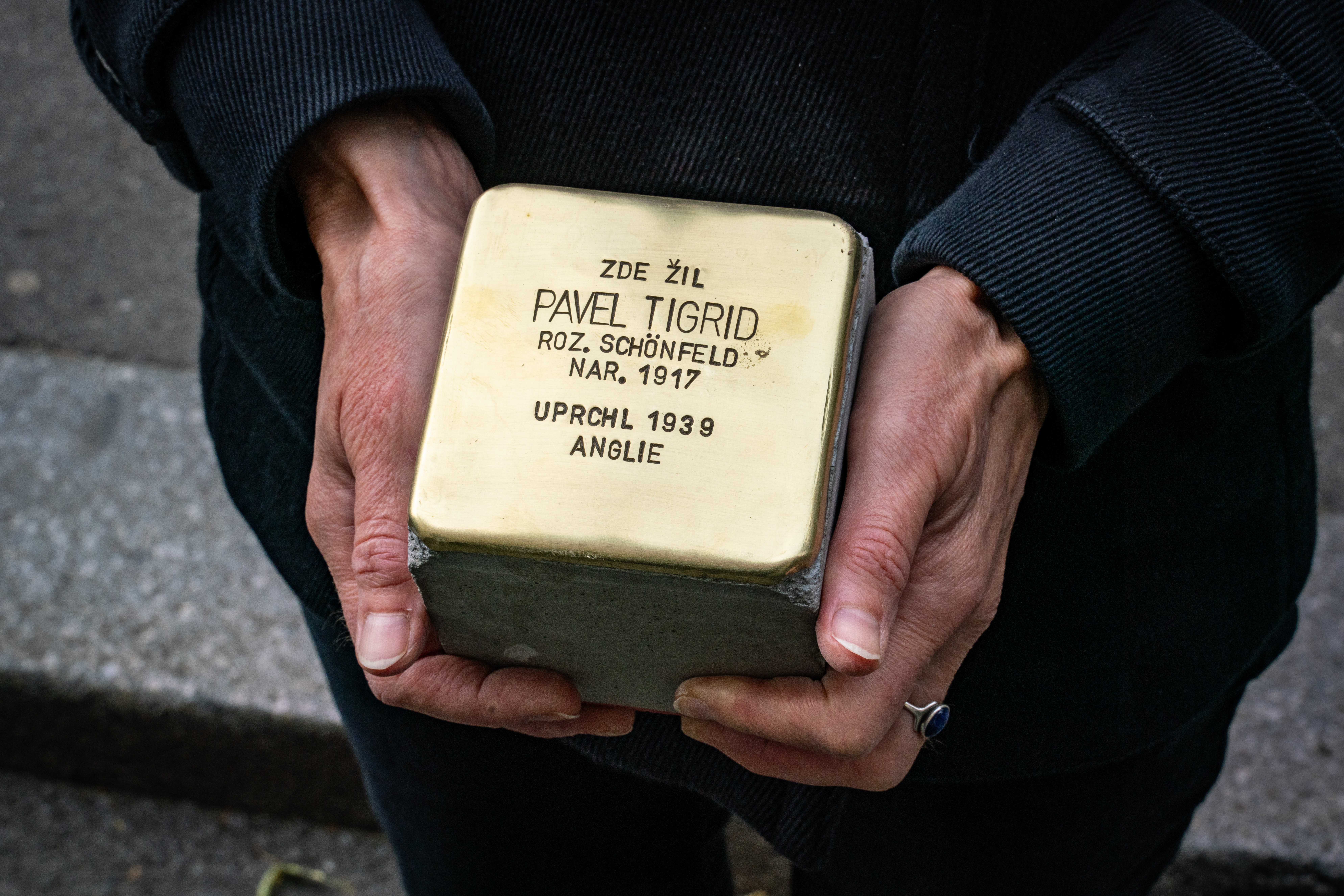 Vor dem Haus in der Kouřimská 5 hatten sich Dutzende Menschen versammelt, um des Publizisten, Schriftstellers, Dissidenten, Politikers und einstigen tschechischen Kulturministers Pavel Tigrid zu gedenken. Wir haben ihm unseren ersten Stolperstein gewidmet. Verlegt wurde er von seinen Kindern, den Töchtern Deborah und Kateřina und dem Sohn Gregory, der den feierlichen Moment mit folgenden Worten eröffnete: „Das Exil hat meinem Vater das Leben gerettet, er ist dem Holocaust nur knapp entronnen.“