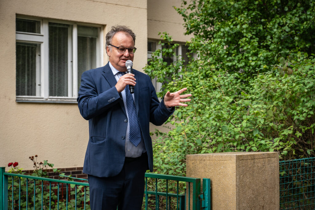 „Wir stehen an einem außergewöhnlichen Ort und unser Stolperstein wird für immer an diesen außergewöhnlichen Menschen, Schriftsteller und Politiker erinnern. All das und noch viel mehr war Pavel Tigrid“, erinnerte unsere Geschäftsführerin Petra Ernstberger.